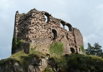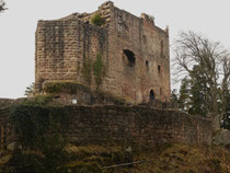 Château en ruines. Voir dans la façade la porte ogivale et une belle fenêtre à cinq meneaux. Présence d'une tour pentagonale sans ouverture. Au fond, dans une étroite niche pratiquée dans cette tour, on peut voir une curiosité : un vomitoire ou un lieu d’aisance. Le château a été construit au XIIIème siècle par Berger BURGHARDT, feudataire de l’évêque de Strasbourg. A l’extinction de la descendance en 1532, il fut laissé à l'abandon. Abri pour pique-nique. Nettoyé tous les ans par des bénévoles CV.